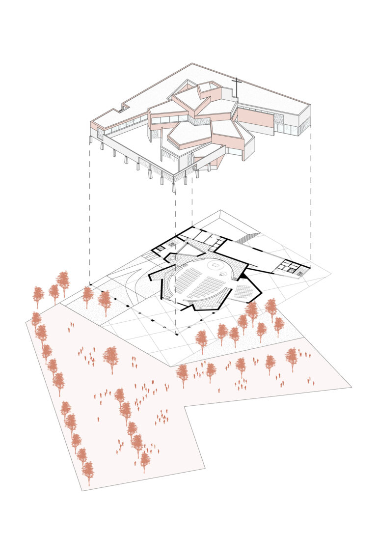 The project for the new parish complex in Giavera del Montello aims to restore harmony and centrality to the heart of the town, replacing an architecture that had long stood apart from its surroundings. The new design transforms the area into a welcoming space for the entire community, where civic and religious functions intertwine: the churchyard, the Giardino dei Gentili, and the new public square become inclusive places open to encounter and diversity — a reflection of the multicultural identity that defines this territory.