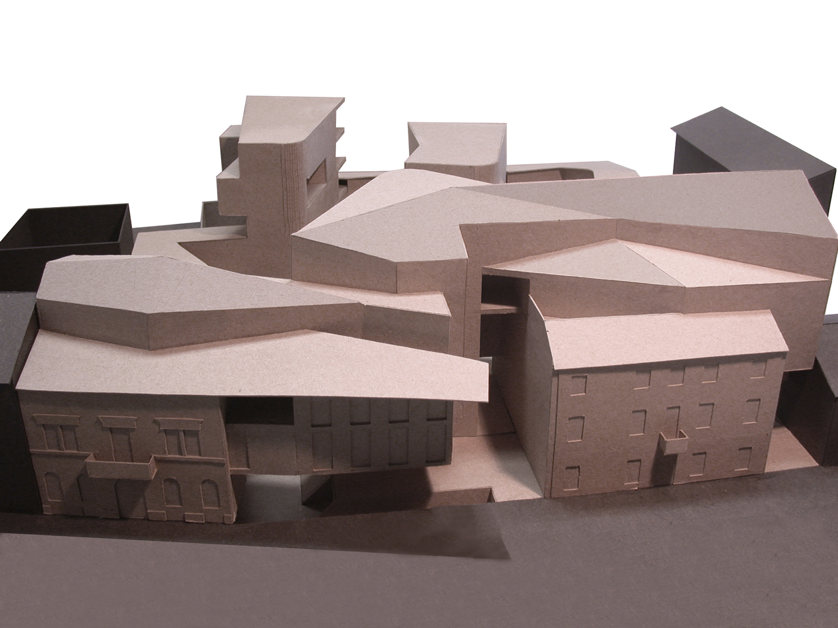 The project aims to exploit the consolidated urban fabric of the old town centre of Rovigo in order to form historic and contemporary architecture into a single whole. The new layout will be articulated and reorganised in such a way that it links up with the surrounding urban fabric. The line of buildings along the street is at present broken at the spot which is to be the focal area of the project. This makes it possible to establish a clear link with the existing urban fabric of this part of the city whilst maintaining the autonomous, contemporary character of the project.s of the courtyard which are in shadow.